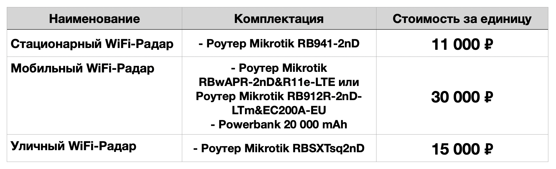 Лицензионное вознаграждение за право использования «SMM RADAR - решения WiFi-Радар» устанавливается в зависимости от описываемой ниже функциональности «SMM RADAR - решения WiFi-Радар», используемого Лицензиатом.